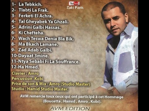 Album Complet de Bilal Sghir —chante Les Eternelles— (12 titres) pour tous les fans ♥ 1— 00:00:00 — La Tebkich 2— 00:04:45 — Tlabti La Frak 3— 00:10:39 — Ferketi El Achra 4— 00:15:20 — Tal Gheyabek Ya Ghzali 5— 00:20:00 — Adrini Galbi Hassas 6— 00:24:57 — Ki Chefteha 7— 00:31:36 — Wach Teswa Denia Bla Bik 8— 00:37:18 — Ma Bkach Lamane 9— 00:43:04 — Zad Adab Galbi 10— 00:49:17 — Dayaat 3mine 11— 00:54:44 — Ntya Sebabi Fi La Souffrance 12— 01:00:27 — Ha Hmed Bonne écoute Et n'hésitez pas à mettre un pouce vers le haut si vous aimez ☺ Audio "high quality" By AVM Edition ♥ORAN♥ .
